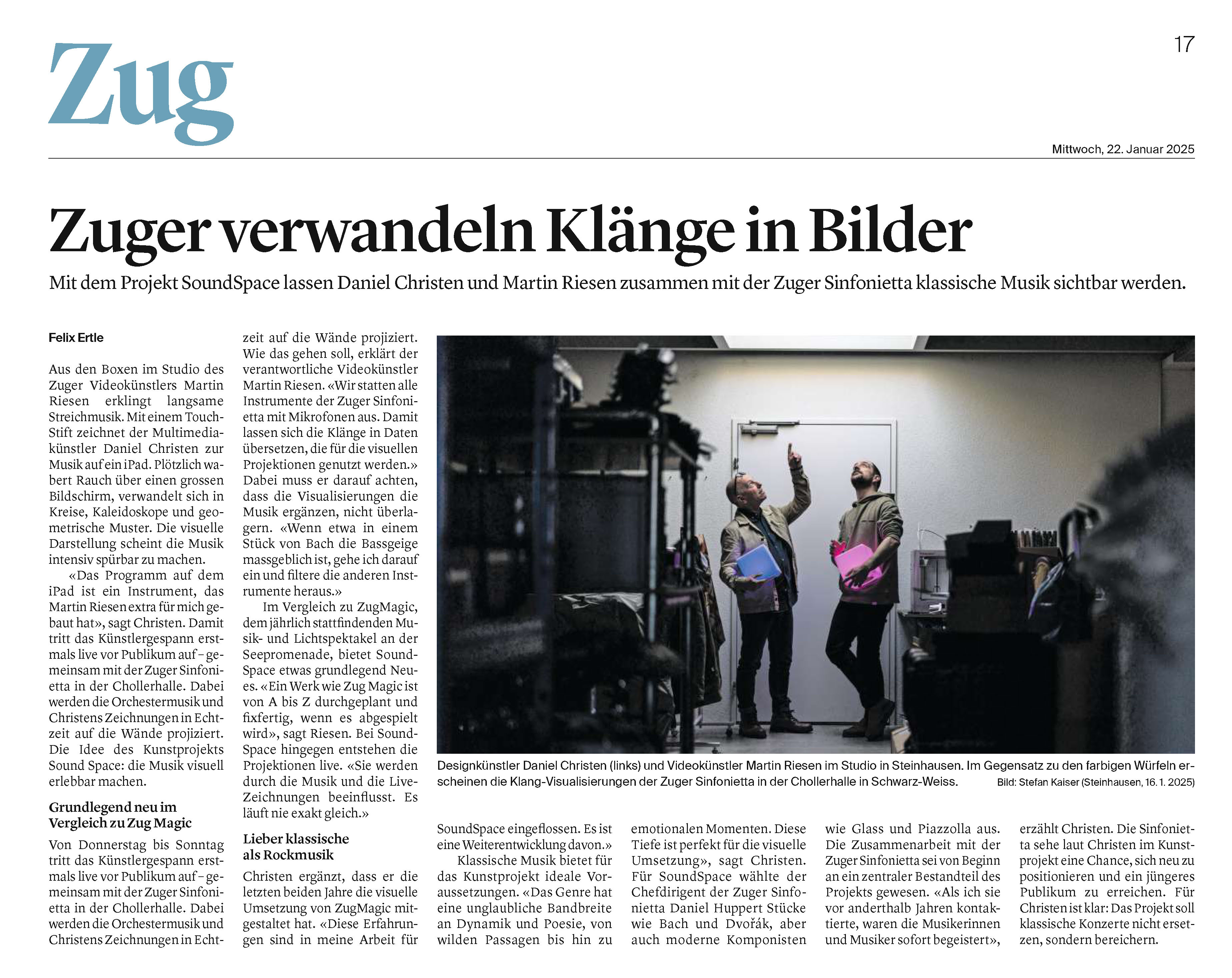 «Es war ein inspirierendes, bereicherndes und schönes Konzert – wie es auch in London, Paris oder New York hätte aufgeführt werden können. Schön, dass wir solche Kreativität auch in Zug haben…» Martin Würmli, Stadtschreiber, Zug
